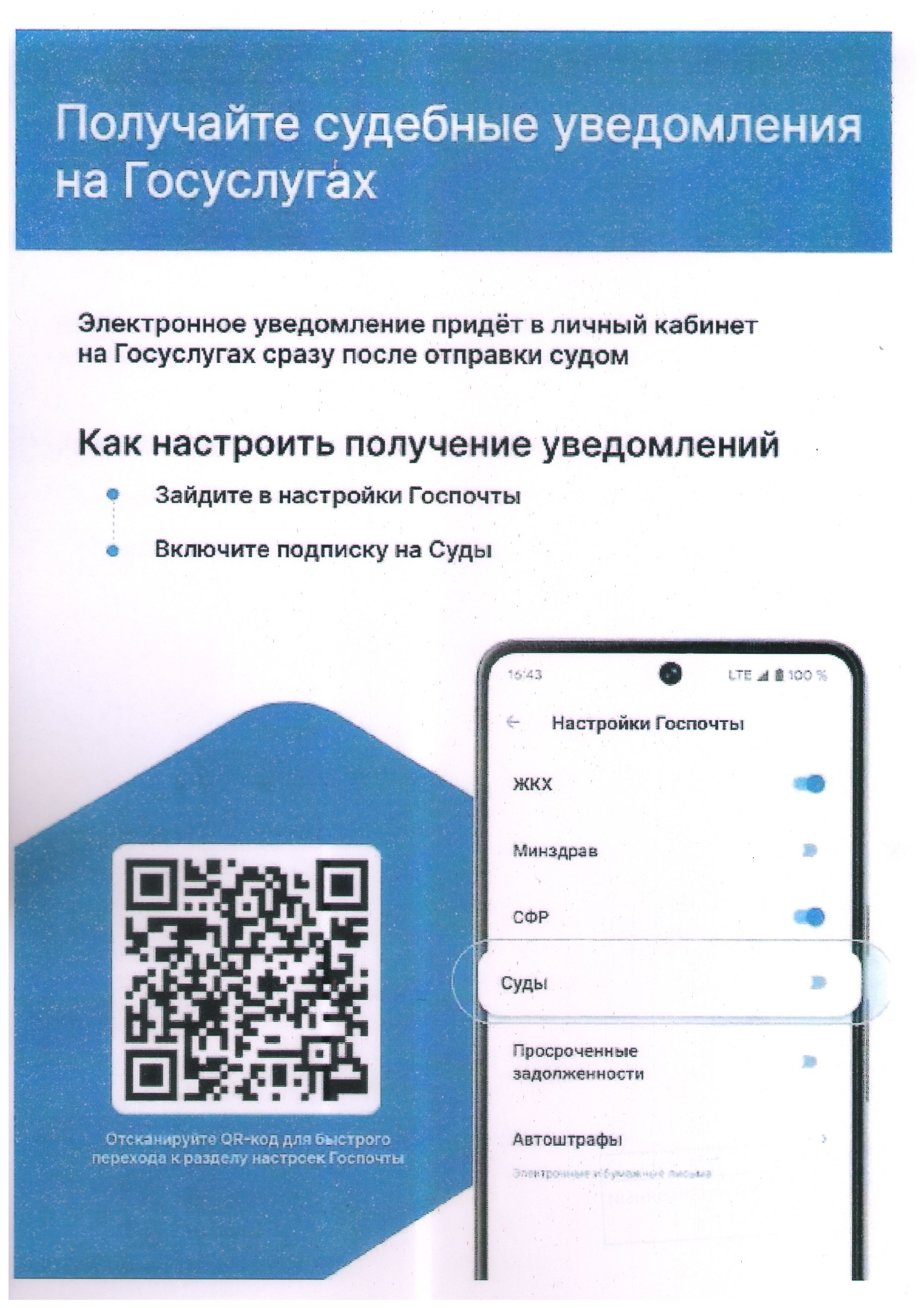 Получение судебной корреспонденции посредством Государственной электронной почтовой системы (ГЭПС) - это доступно и просто, так как электронное уведомление придет в личный кабинет на Госуслугах сразу после отправки судом.
